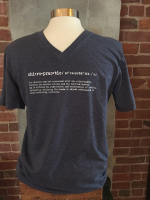 Do you ever have someone ask you what is the definition of chiropractic? Then you NEED this shirt! Now made in the most popular V-Neck style in a beautiful grey poly-cotton-rayon blend and the perfect fit heathered navy V-neck.