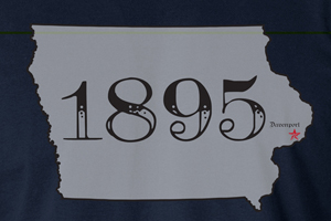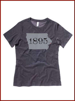 You asked, we listened! Finally, we have a tee shirt with more room where you need it. This super soft cotton tee has a roomier fit through the bust and belly with a slightly longer cap sleeve yet is still cut for a woman's body. Features the outline of the state of Iowa with Davenport starred. 1895? The year it all began baby!