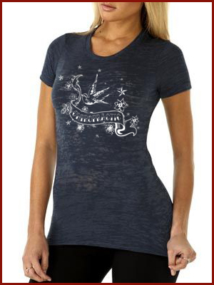 This is the perfect tee with a vintage wash for superb comfort. It is a super soft poly-cotton blend with a broken-in feel. It is super flattering with a cap sleeve, modern feminine shape and flowing fabric lends to great stretch. Sure to become your favorite tee! Who doesn't love birds?